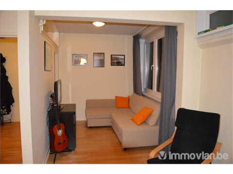 Het 1-slaapkamer- appartement (+60m²) op 2de verdieping werd in 2011 volledig vernieuwd (nieuwe laminaat, elektriciteit, nieuwe ramen met dubbele beglazing en vernieuwde badkamer + ingerichte keuken).