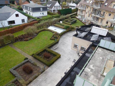 Gelegen op de 4e verdieping met prachtig uitzicht op de groene omgeving en op de zeer verzorgde tuin. Ruim terras van ±7m² volledig zuidgericht.